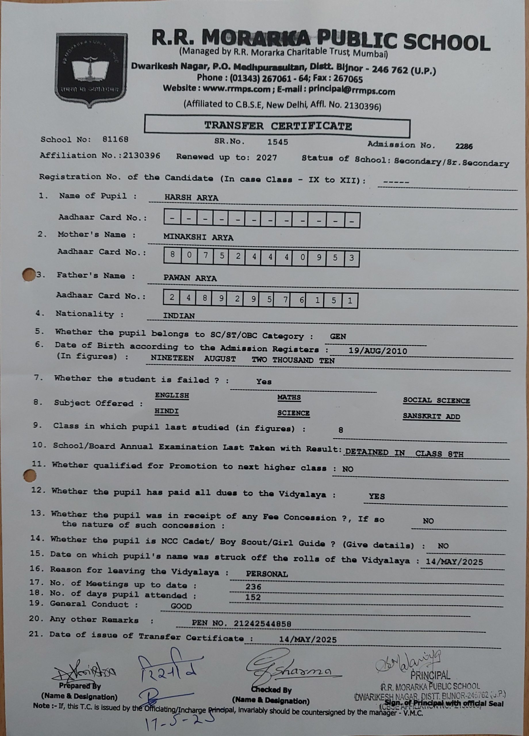 RRMPS X 2025 Result